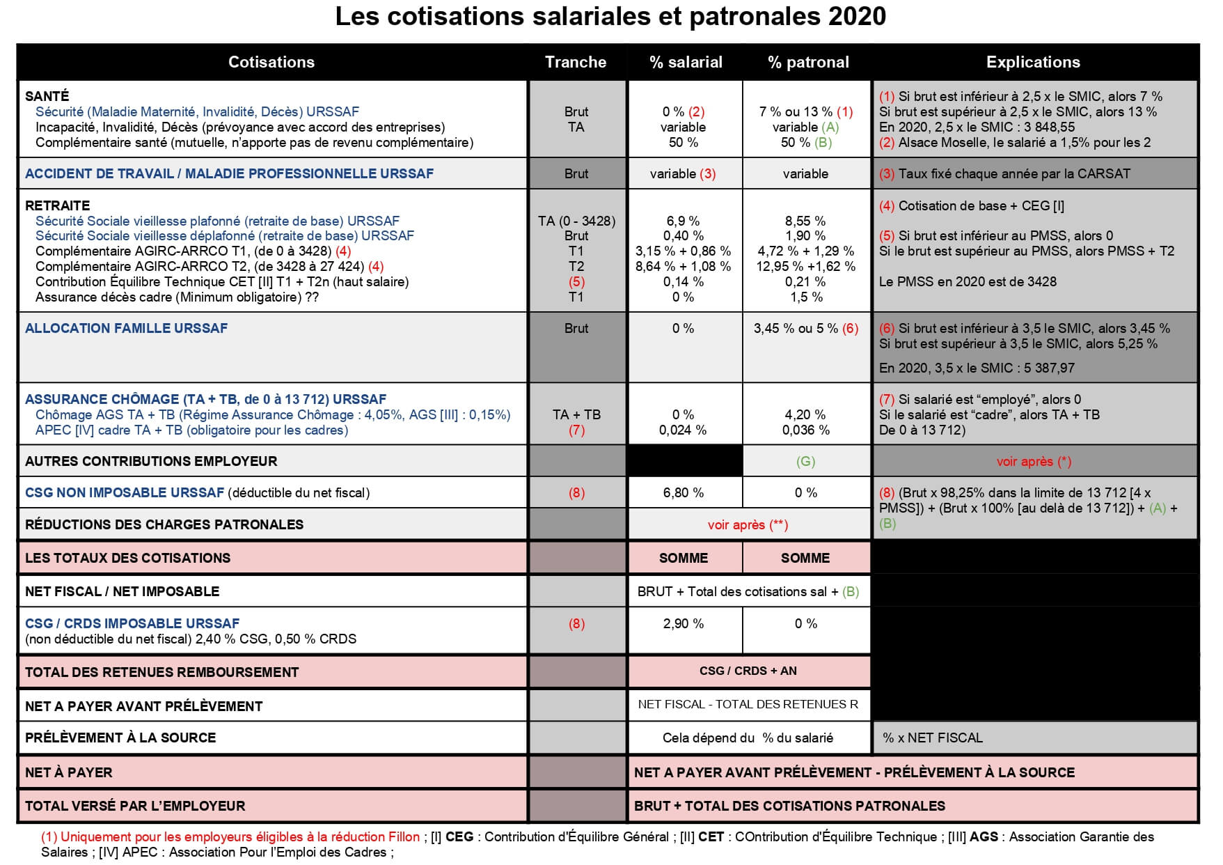 PS : les contributions à la formation seront versés à l'URSAFF à partir de 2021. Attention tableau date de 2021