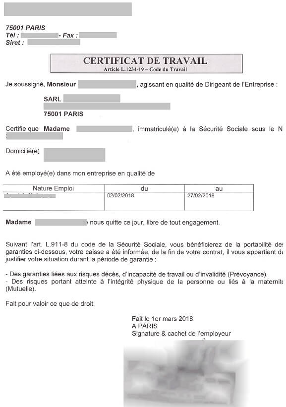 Le certificat de travail est remis à la fin de votre contrat de travail, quelle que soit la raison de la fin du contrat et quel que soit le type de contrat. Vous le recevrez en même temps que l’attestation d'employeur destinée à France Travail et le reçu de solde de tout compte.