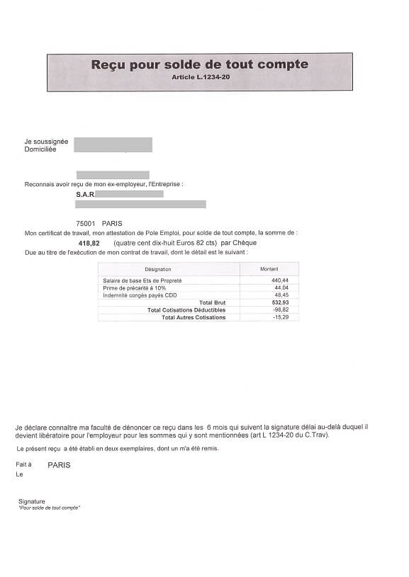 Notez qu'en cas de contestation de la somme par le salarié, vous avez un délai de six mois après la signature pour réclamer la somme manquante. Quant à l'employeur, en cas de trop perçu dans le solde de tout compte, il dispose d'un délai de 3 ans après votre signature pour demander un remboursement, bien que ce cas soit très rare.